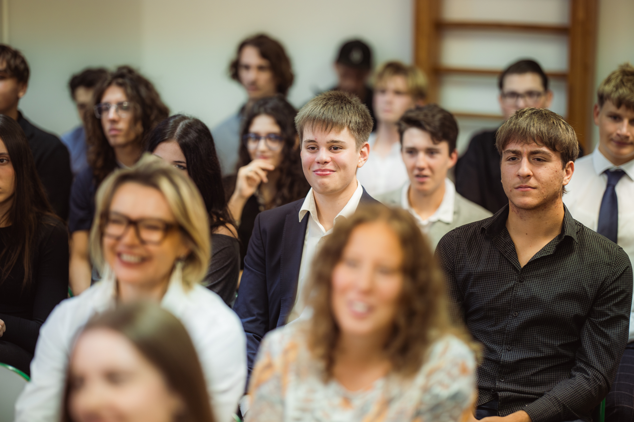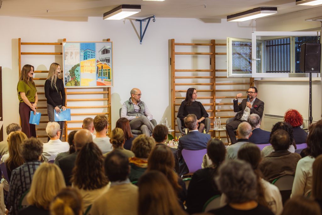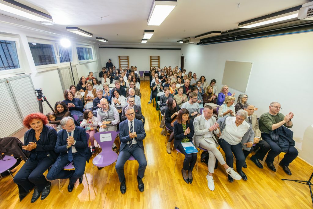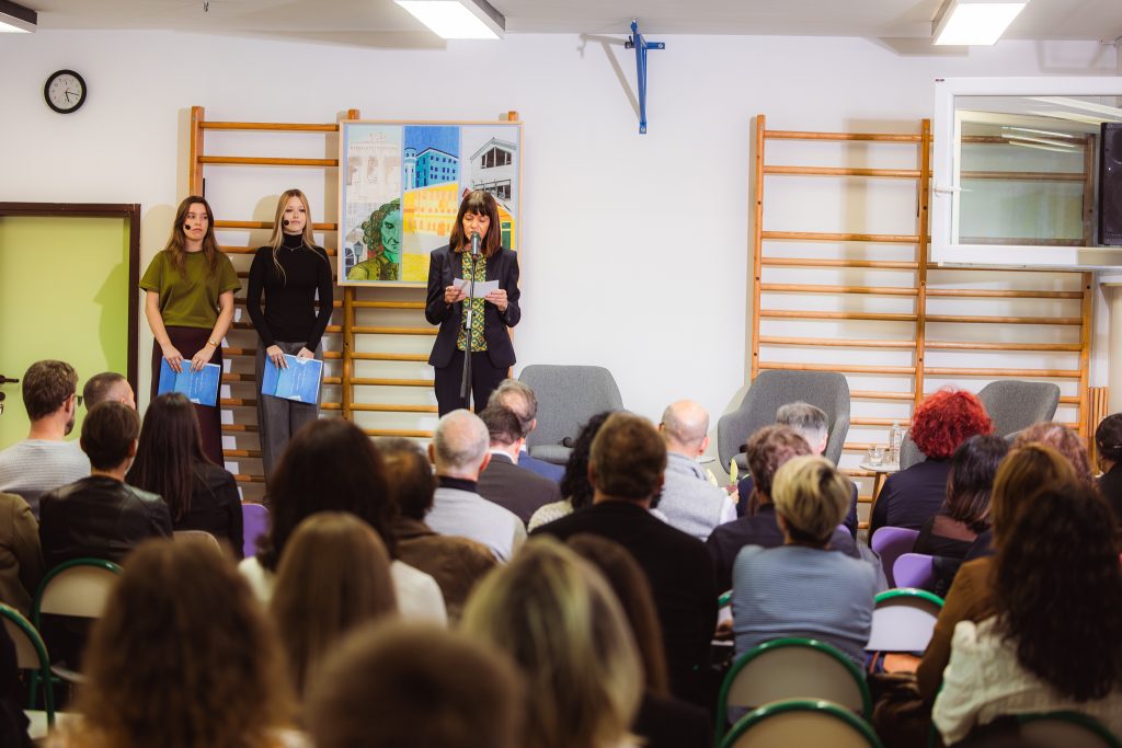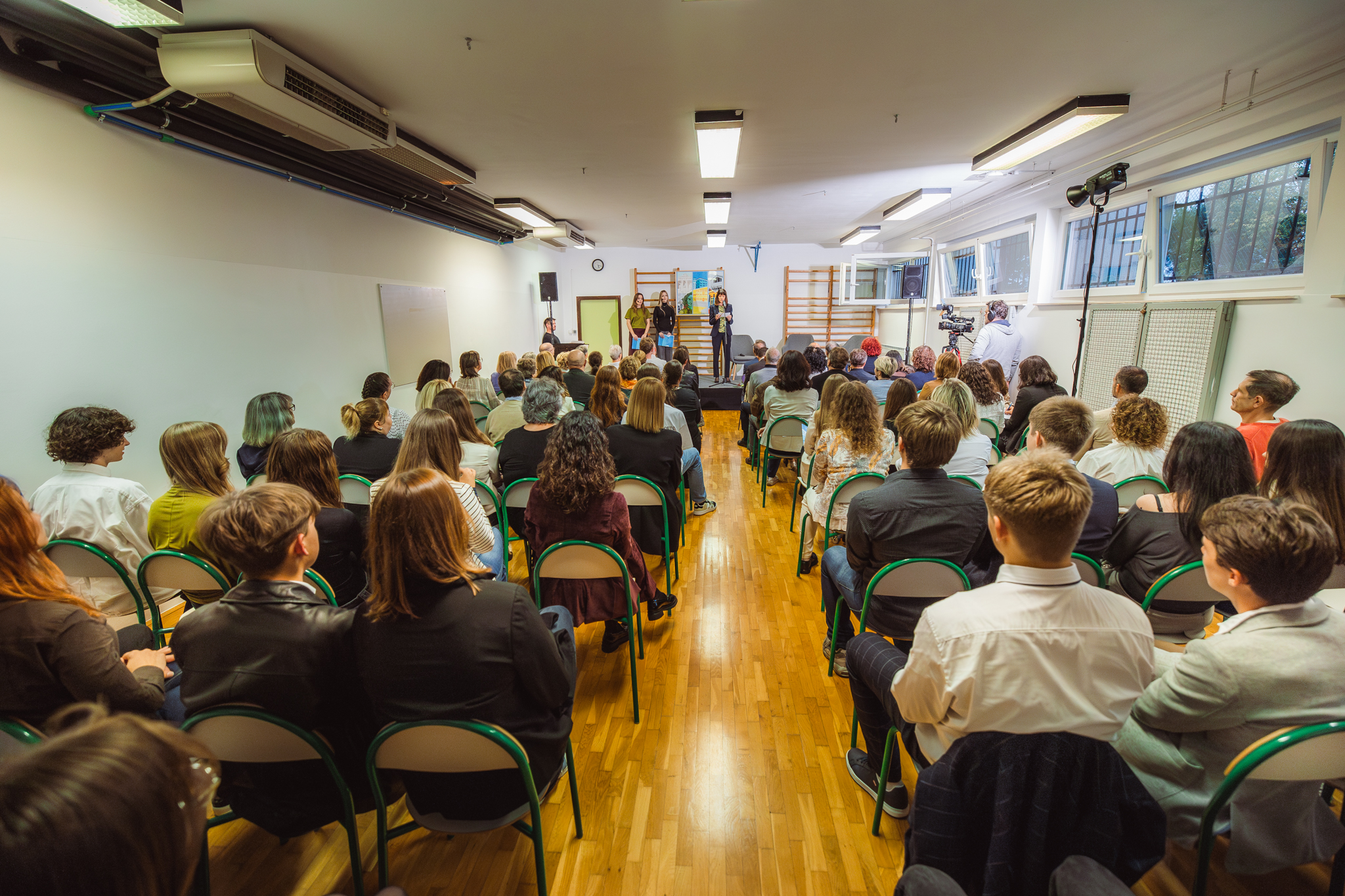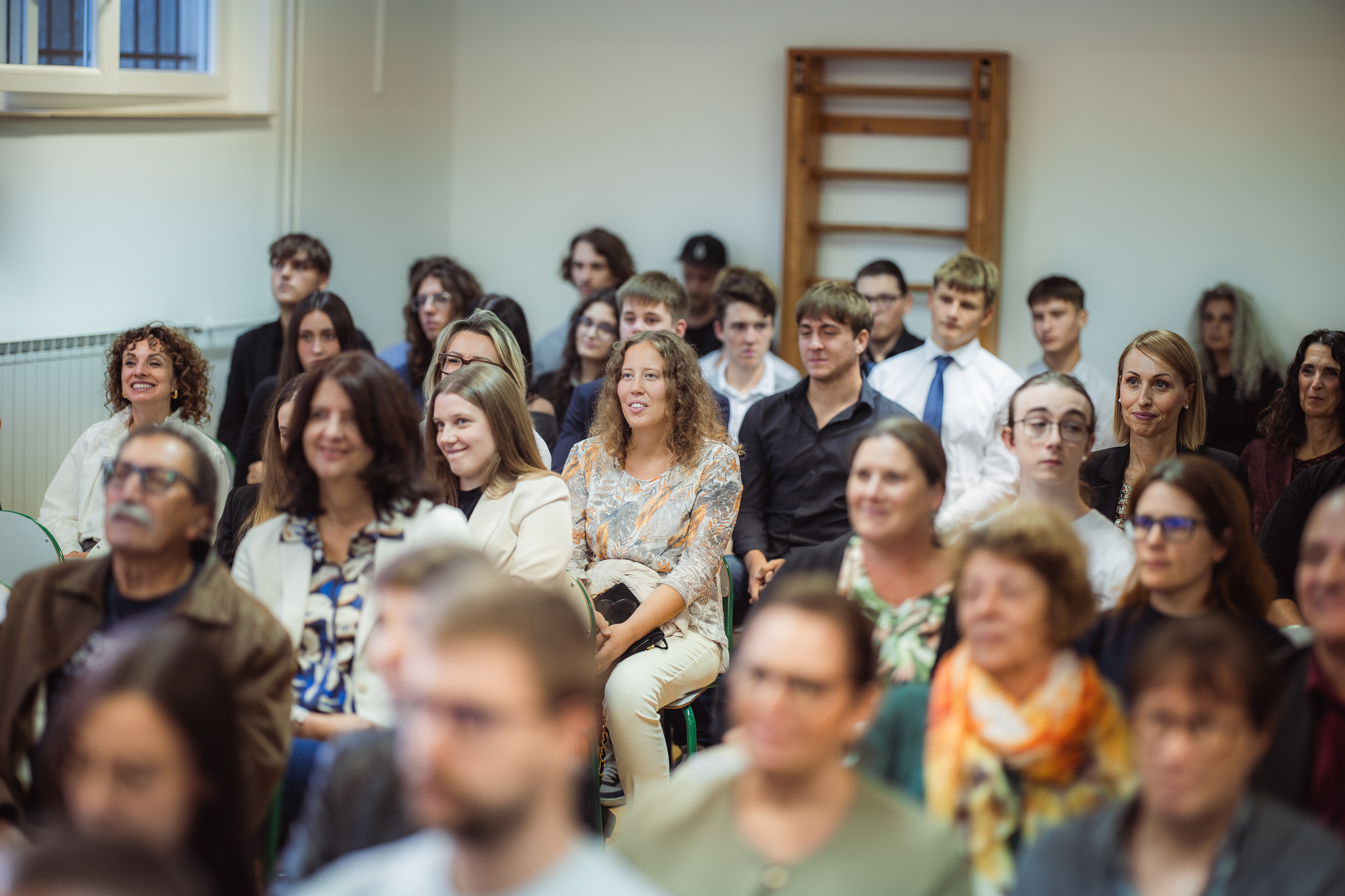 Mercoledì 22 ottobre 2025 abbiamo celebrato un traguardo davvero speciale: l’80° anniversario del nostro ginnasio. Per festeggiare questa ricorrenza, abbiamo scelto un modo semplice, ma significativo: un incontro tra studenti e docenti di ieri e di oggi, un dialogo tra generazioni unite dallo stesso spirito e dallo stesso amore per la conoscenza. Durante l’evento, tre nostri ex studenti — Andrea Bartole, Anna Maria Bolčič e Gregor Leiler — hanno condiviso con il pubblico il loro percorso umano e professionale. Con grande disponibilità e sincerità hanno risposto alle domande poste dagli studenti attuali, offrendo parole di incoraggiamento, fiducia e curiosità verso il futuro. Le loro esperienze sono diventate una testimonianza concreta di quanto una scuola possa lasciare un segno nella vita di chi la frequenta.