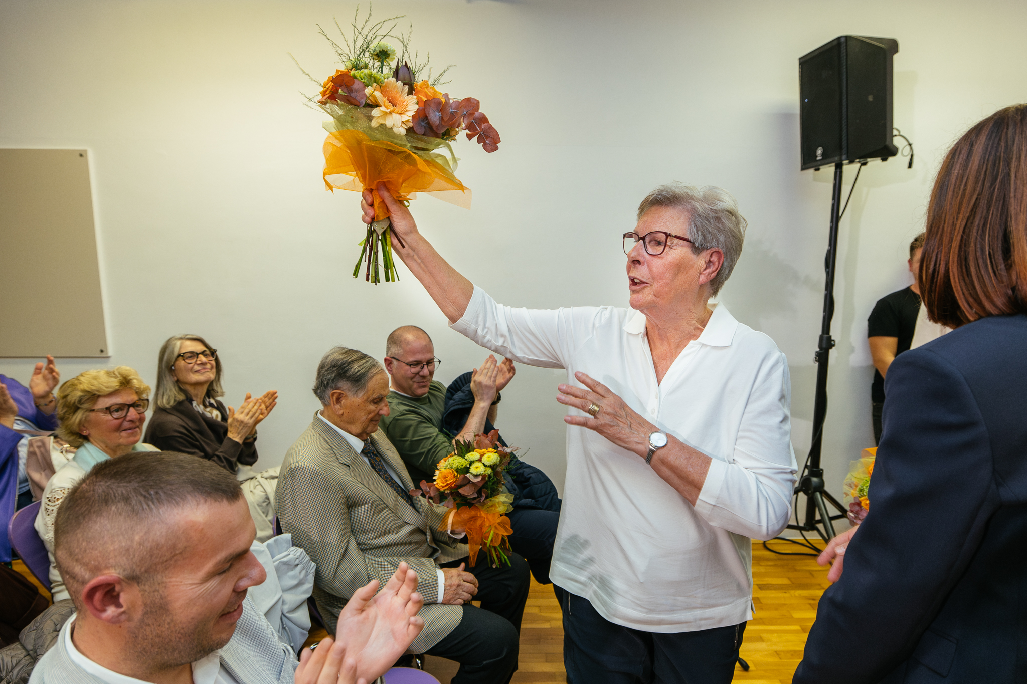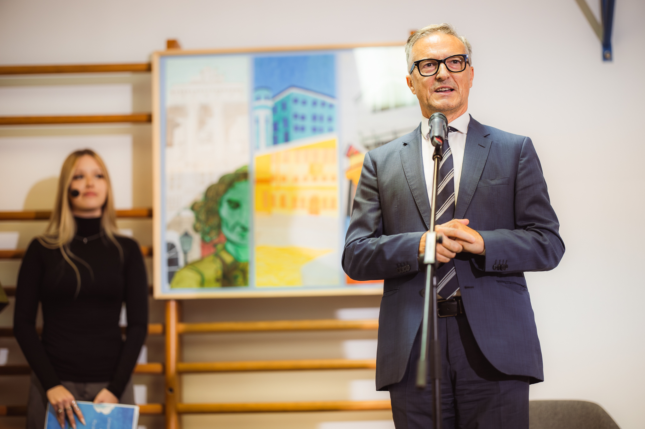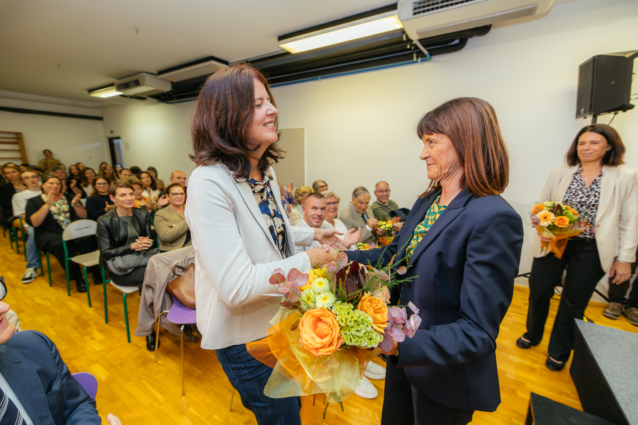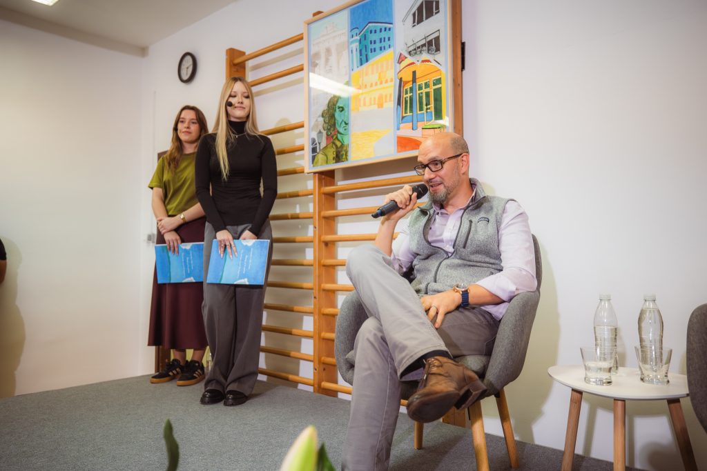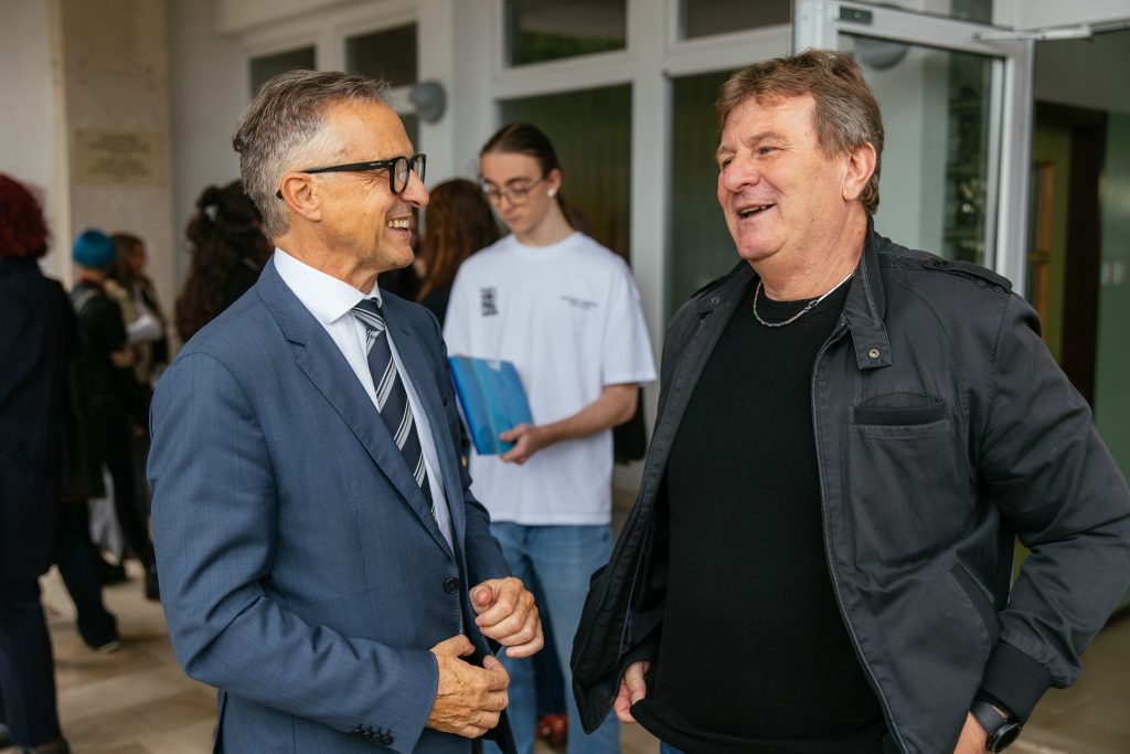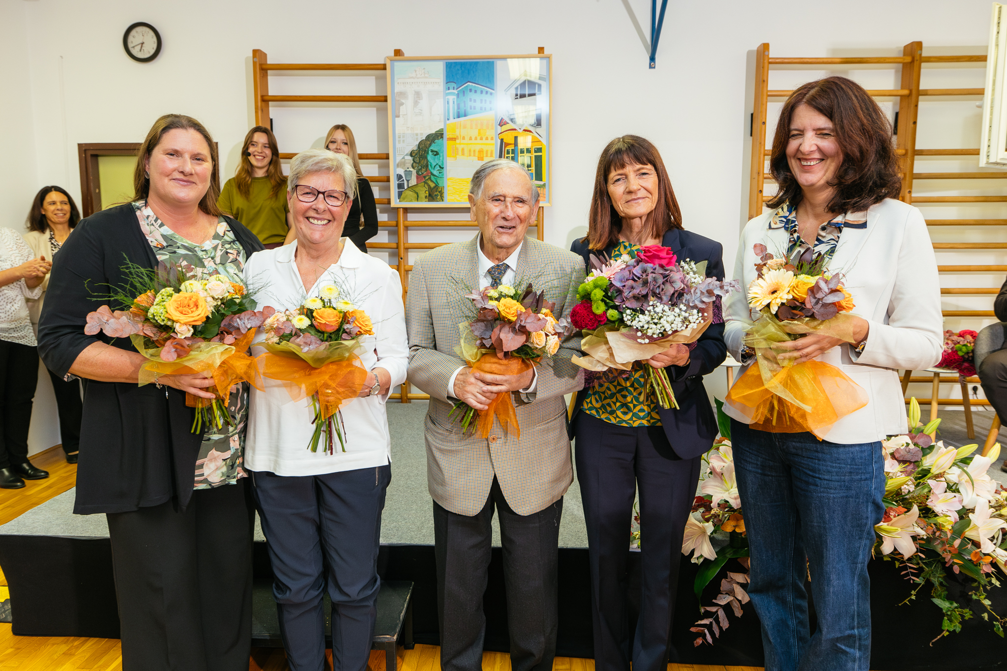 Mercoledì 22 ottobre 2025 abbiamo celebrato un traguardo davvero speciale: l’80° anniversario del nostro ginnasio. Per festeggiare questa ricorrenza, abbiamo scelto un modo semplice, ma significativo: un incontro tra studenti e docenti di ieri e di oggi, un dialogo tra generazioni unite dallo stesso spirito e dallo stesso amore per la conoscenza. Durante l’evento, tre nostri ex studenti — Andrea Bartole, Anna Maria Bolčič e Gregor Leiler — hanno condiviso con il pubblico il loro percorso umano e professionale. Con grande disponibilità e sincerità hanno risposto alle domande poste dagli studenti attuali, offrendo parole di incoraggiamento, fiducia e curiosità verso il futuro. Le loro esperienze sono diventate una testimonianza concreta di quanto una scuola possa lasciare un segno nella vita di chi la frequenta.