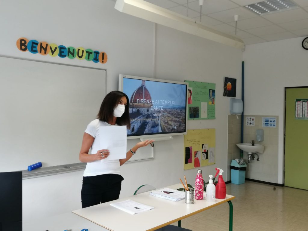 Il laboratorio di storia, Firenze al tempo di Dante, ci ha riportati alla Firenze dell’epoca comunale, con le sue lotte interne per il potere, che ha segnato profondamente la vita dell’autore. Attraverso il laboratorio di italiano, Le espressioni coniate da Dante nella Divina Commedia, abbiamo ricordato l’importanza di Dante come “padre della lingua italiana”, come colui che ha creato delle parole, delle espressioni in italiano entrate nell’uso corrente. Infine, con Il mondo di Dante, si è posta l’attenzione sull’aspetto geografico della Commedia, su come Dante, uomo del Medioevo, vedeva il mondo, quel modo presente nell’opera. Infine, non poteva mancare la parte creativa: un’ora in cui i ragazzi hanno dato vita a dei lavori artistici, ispirandosi alla figura del poeta; utilizzando dei materiali alternativi quali foglie, sassi, rami, fiori, terra, ghiaia, muschio e altro ancora. Ne sono nate delle idee davvero originali che daranno vita a una mostra che verrà allestita a scuola.