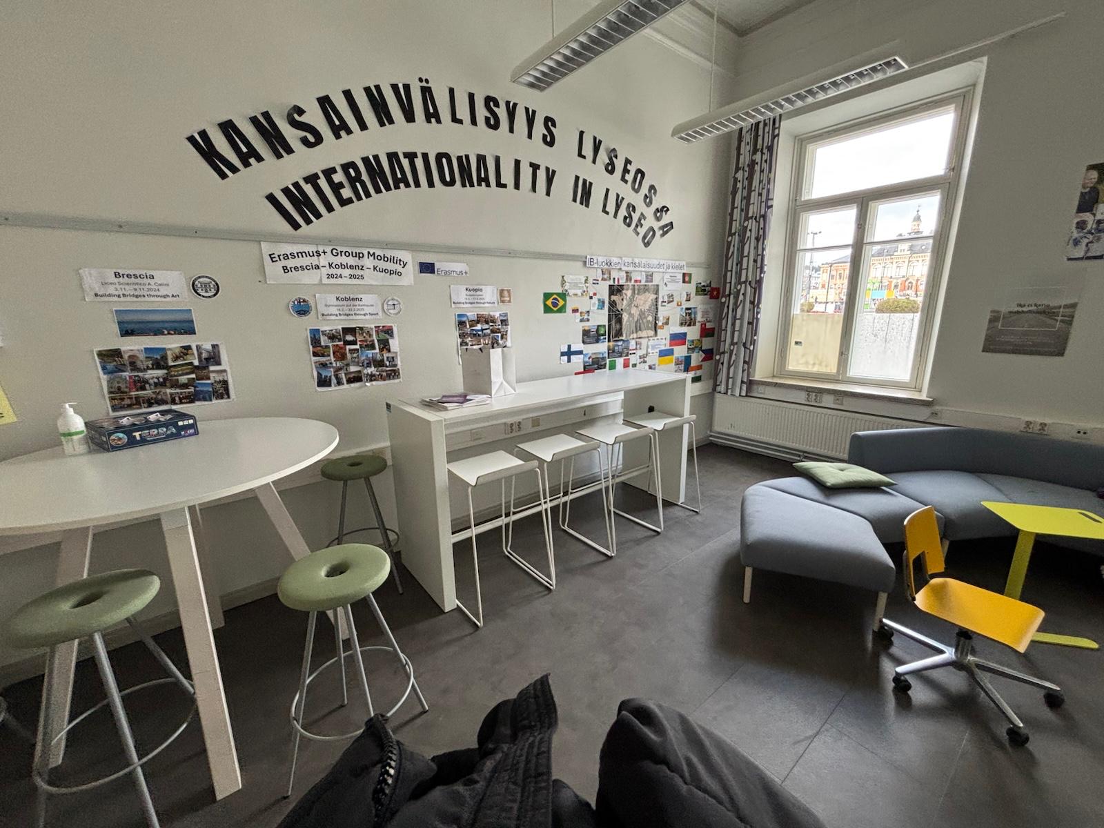 V torek je sledil uradni sprejem na gimnaziji Kuopion Lyseo. Po nekaj “icebreaking” dejavnostih so si dijaki ogledali šolo in sodoben šolski center Lumit ter začeli delati na projektu z naslovom »Kako narava vpliva na našo kulturo«. Dijaki so predstavili našo naravno in kulturno dediščino in jo primerjali s finskimi vrstniki. Skupaj so razmišljali o tem, kakšno vlogo ima narava v vsakdanjem življenju in kako jo doživljajo v različnih državah. Popoldne pa so doživeli pravi finski trenutek – tradicionalno savno, ki ji je sledil osvežujoč skok v jezero.