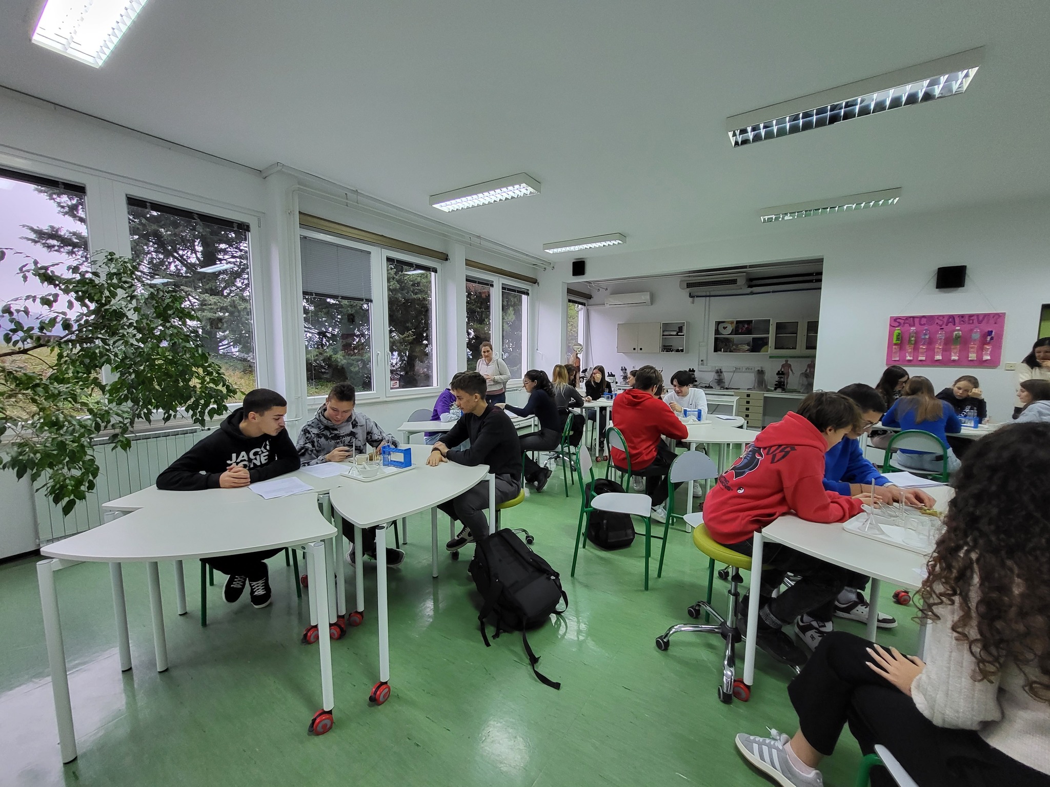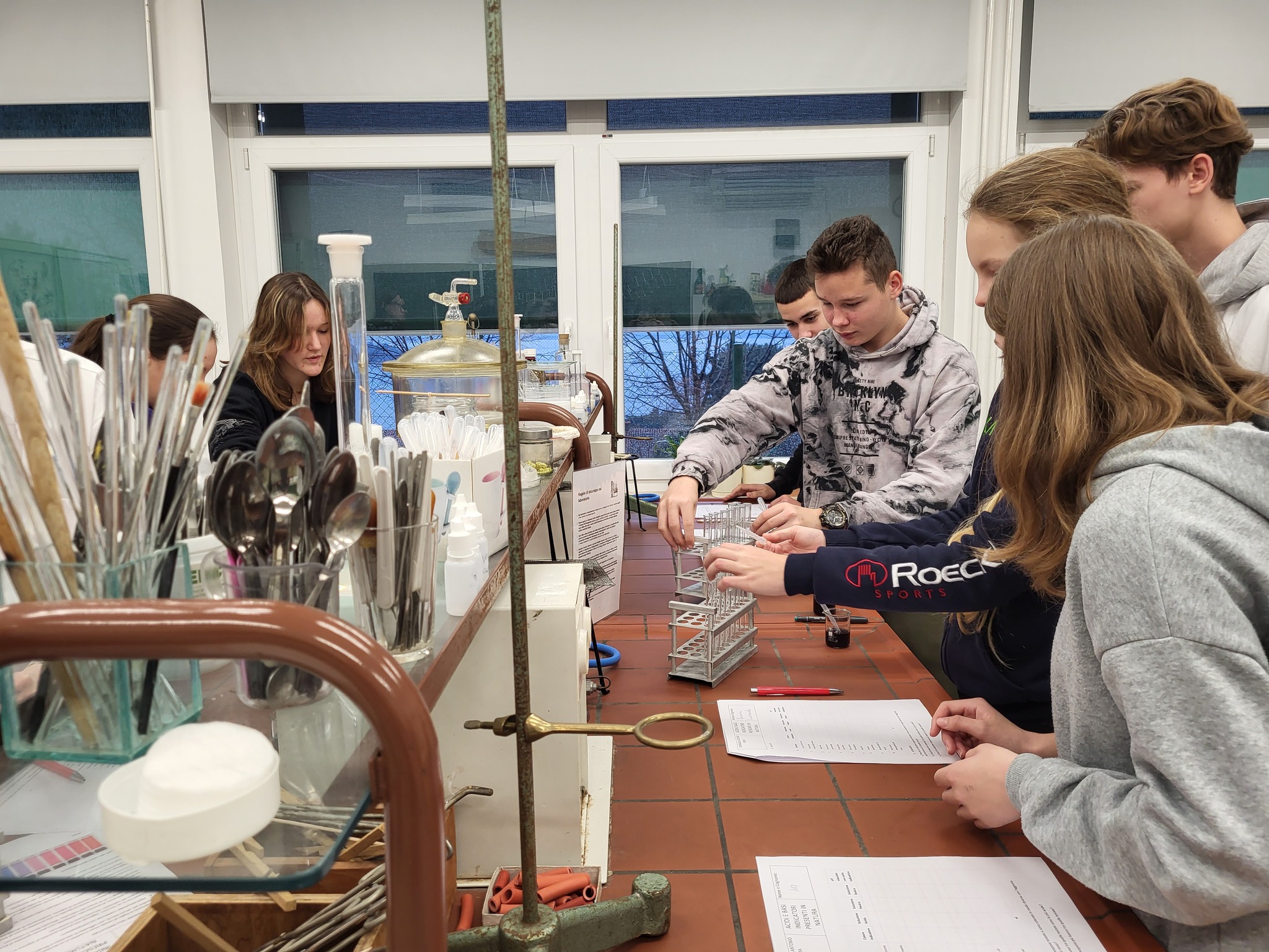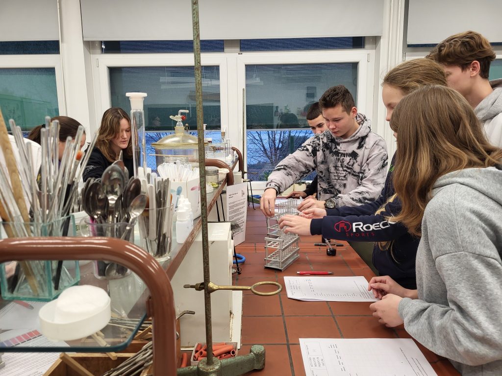 Giovedì 18 gennaio sono stati nostri graditi ospiti gli alunni delle IX classi della Scuola elementare “Vincenzo e Diego de Castro” di Pirano che hanno partecipato a dei laboratori scientifici organizzati dai nostri docenti. Nel laboratorio di matematica sono stati trattati in modo inconsueto diversi tipi di numeri, nel laboratorio di chimica i ragazzi hanno svolto un’esperimento su acidi e basi mentre il laboratorio di biologia aveva come obiettivo l’estrazione del DNA.